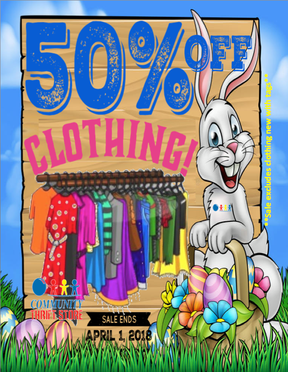 Just in time for a fresh wardrobe for the Easter holiday weekend – enjoy 50% off all clothing! Score! Sale ends April 1, 2018!*