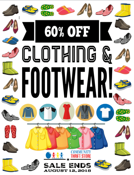 Every new outfit needs a pair of great shoes to go with it, right? Of course – that’s why our clothing & footwear are 60% off!! Shoes & Clothing, Shoes & Clothing…you can’t have one without the other! Sale ends August 12, 2018!