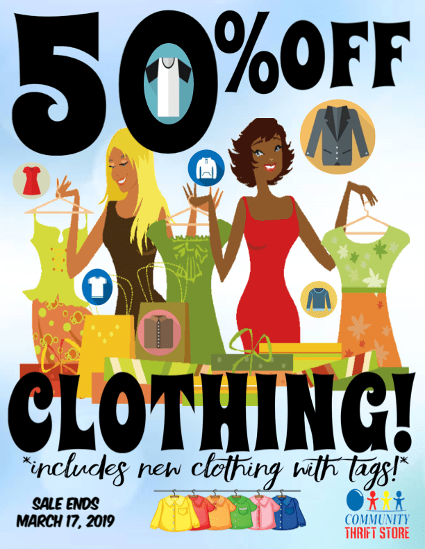 It’s warming up outside! You know what that means…a WARDROBE CHANGE!! Come update yours with 50% OFF all clothing, including new clothing with tags! Sale ends March 17, 2019.