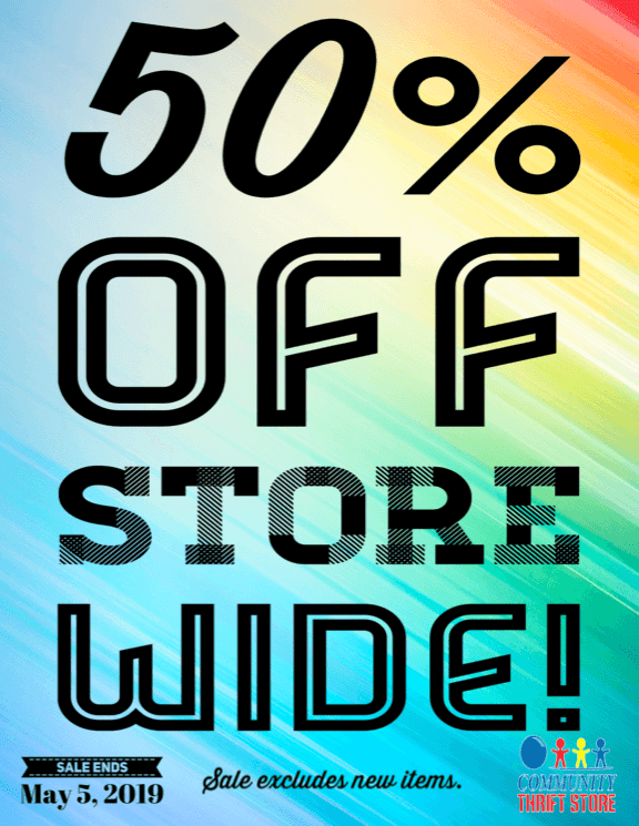 BIG appreciation for our customers deserves a BIG sale! Hurry in for 50% OFF Storewide!! Sale excludes new items and ends May 5th, 2019.