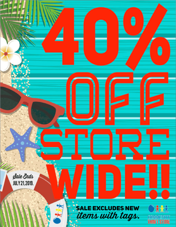 Beat the summer heat and come shop til you drop!! Enjoy 40% off STOREWIDE! Sale ends July 21, 2019 and excludes new items with tags.