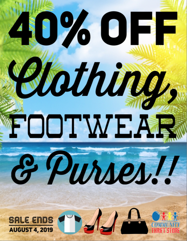 There’s still plenty of time to give your summer wardrobe a sizzlin’ hot makeover! Come in and enjoy 40% off Clothing, Footwear & Purses! Sale ends August 4, 2019.