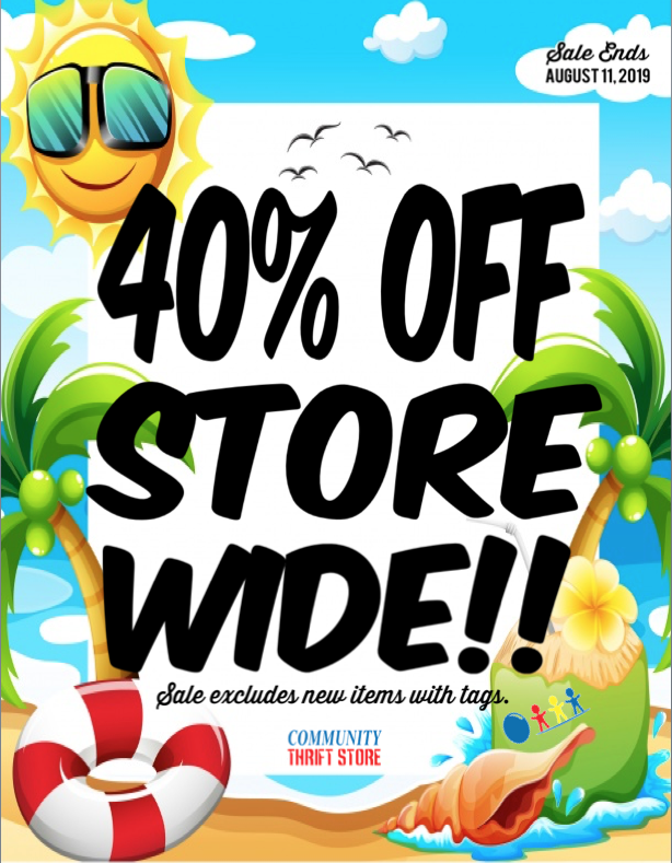 The temperature is risin’ on this hot summer deal!! Enjoy 40% off STORE WIDE!! Sale excludes new items with tags and ends August 11, 2019.