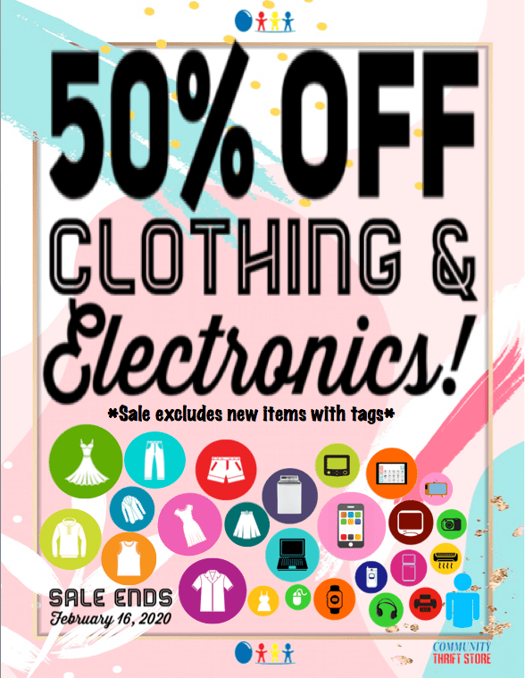 Here’s a sale to warm your heart and make you forget about the winter wonderland outside! Come in for 50% off Clothing and Electronics! Sale excludes new items with tags and ends February 16, 2020.