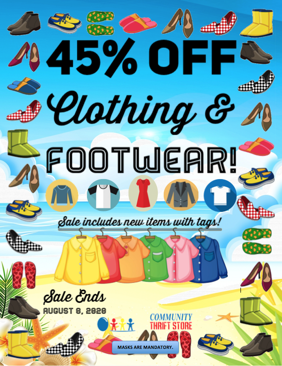At prices this low, you can afford to swap out your entire wardrobe more often! Hurry in for 45% OFF ALL CLOTHING & FOOTWEAR! Sale includes new items with tags and ends on August 8, 2020.
