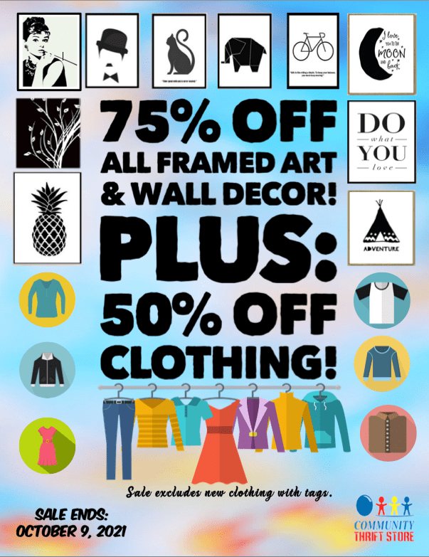 Come in for 75% OFF all Framed Art & Wall Decor! PLUS: Take 50% OFF Clothing!
