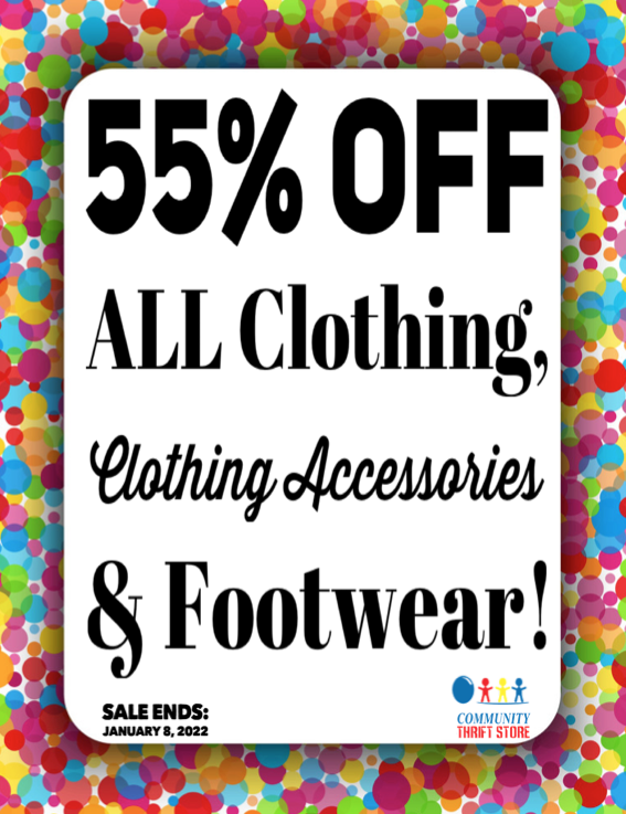 Celebrate with 55% OFF all clothing, clothing accessories and footwear!!