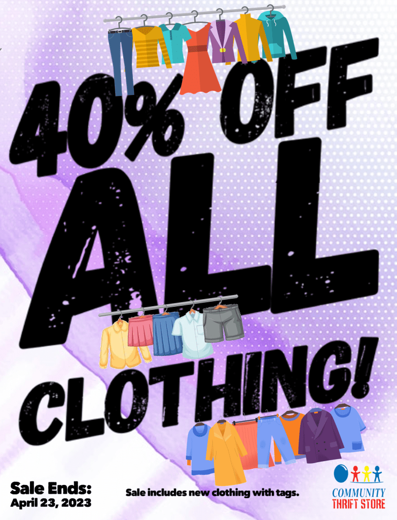 !! Sale includes new clothing with tags and ends on April 23rd, 2023.