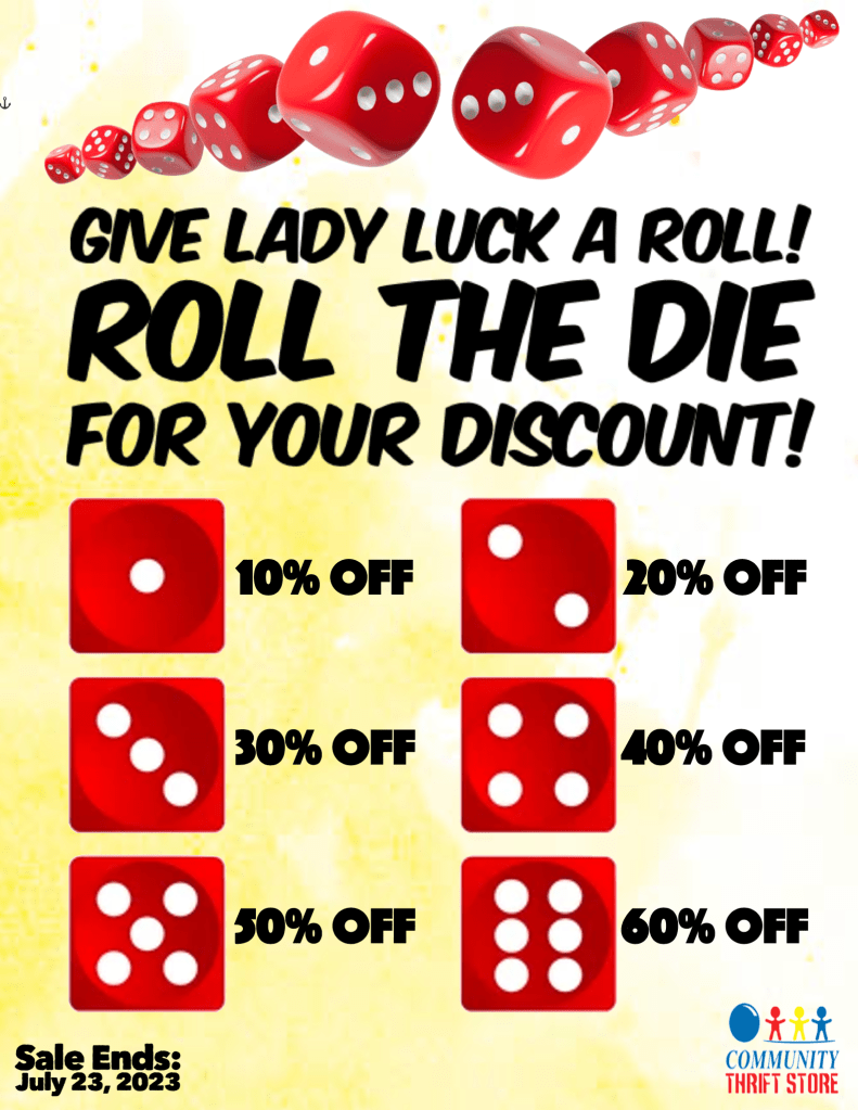 🎲 Give Lady Luck a Roll 🎲!! This week, roll the die at checkout to determine your discount! Sale ends July 23rd, 2023.🎲