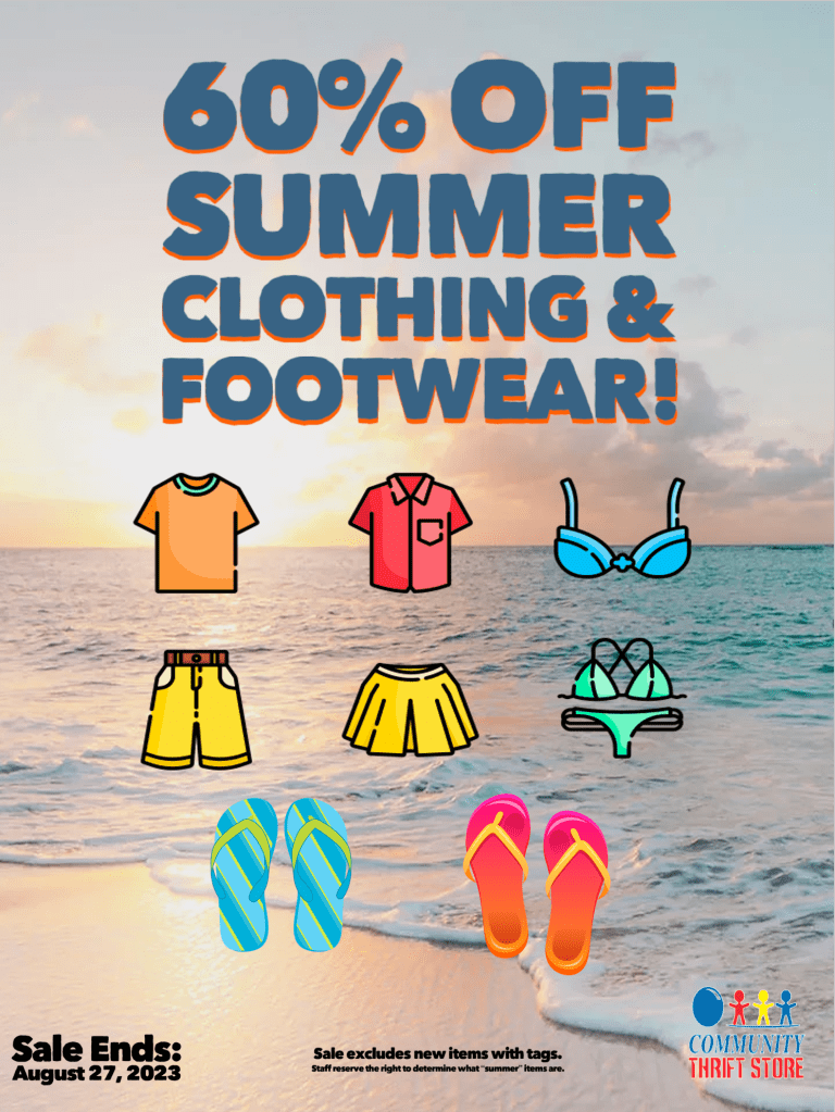 ☀️Hold on to the last little bit of summer with this 🔥sizzlin’🔥 sale!☀️ Take 60% OFF 👙 Summer Clothing 🩳 & 🩴Footwear🩴! Sale ends August 27th, 2023 and excludes new items with tags and outerwear. Staff have the right to determine what “summer items” are.