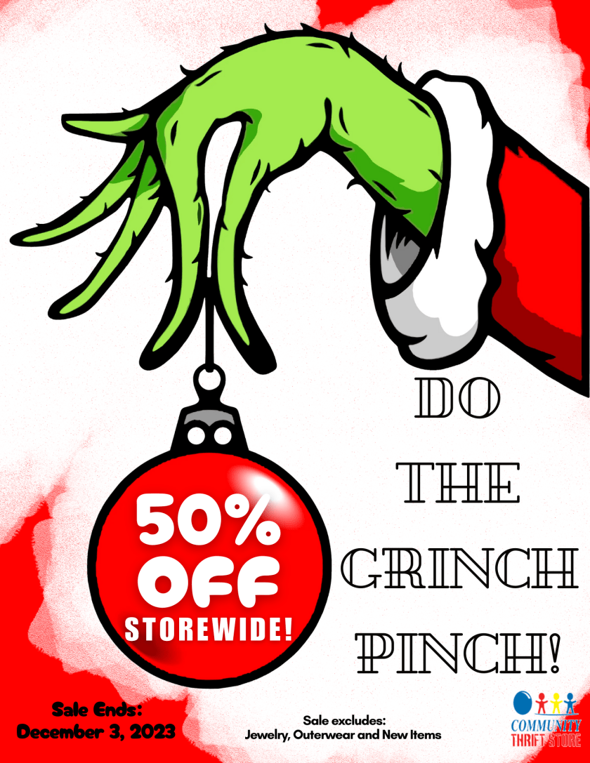 “Maybe Christmas (the Grinch thought) in fact comes from Community Thrift Store! At CTS, your dollar gets you SO much more!”