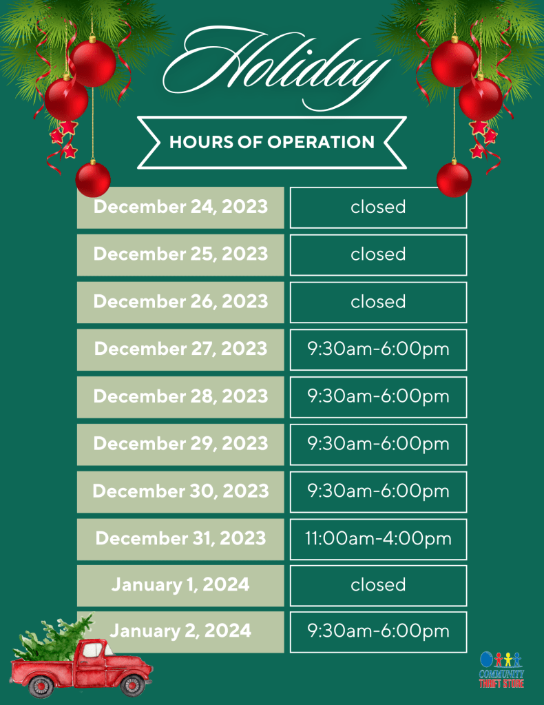 Merry Christmas & Happy Holidays from your friends at Community Thrift Store!๐ฅณ