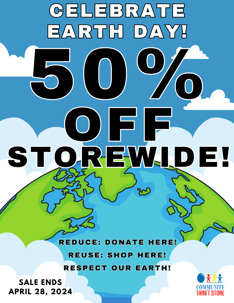 🌍🛍️♻️ Celebrate Earth Day All Week at Community Thrift Store! ♻️🛍️🌍