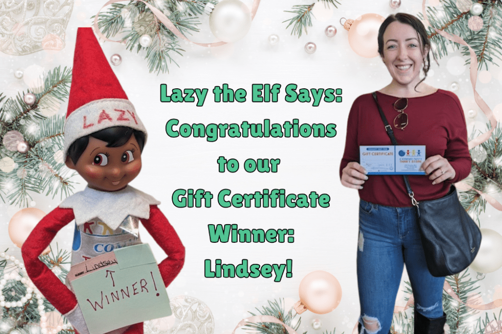 From December 1st to 22nd, Lazy the Elf has been hiding around the store, and all customers who found Lazy were entered into a draw for a $50 gift certificate. We’re excited to announce that Lazy has drawn a name, and the winner is Lindsey! Congratulations! 🎉