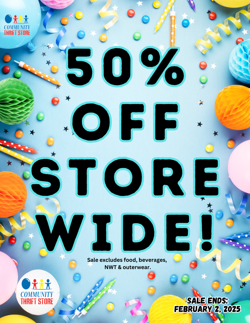 🛑 Stop, drop, and save today, 💥50% OFF STOREWIDE💥 is coming your way! 🛍️ 🏃♀️Hurry in before it’s too late, at these prices, don’t hesitate! ⏳ Sale excludes food & beverages, outerwear and jewellery, and ends on February 2, 2025.