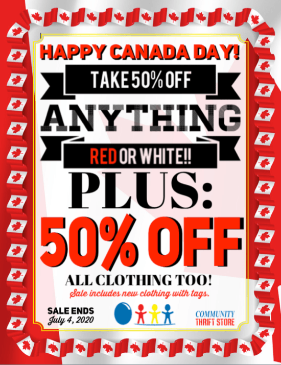 HAPPY CANADA DAY! Let’s celebrate this beautiful country of ours with a TWO WEEK SALE: 50% OFF ANYTHING RED OR WHITE! PLUS: Take 50% off ALL CLOTHING and the sale includes new clothing with tags! Oh Canada! Sale ends July 4th, 2020!