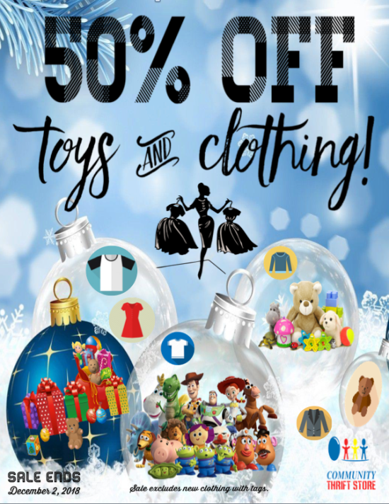 Here’s a little something that’ll help with your gift giving this season: save 50% off Clothing & Toys! Sale ends December 2, 2018.