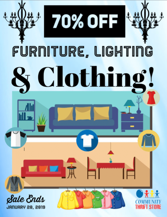 This one is HUUUUUGGGGEEE!! This week, save 70% on Furniture, Lighting AND Clothing!! Sale ends January 20, 2019.