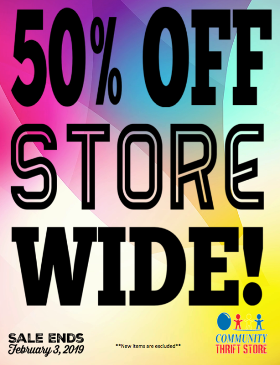 Something for you, something for the kids, and even something for your walls! Come in for 60% off Clothing, Toys and Wall Art! Sale ends January 13, 2019.