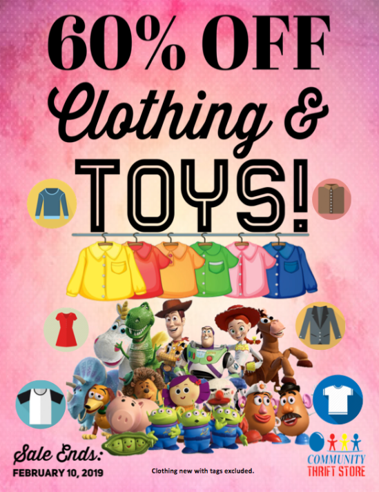 We’ve got a sale to make everyone happy! Save 60% on all Clothing & Toys! Sale ends February 10, 2019. *New clothing with tags excluded.