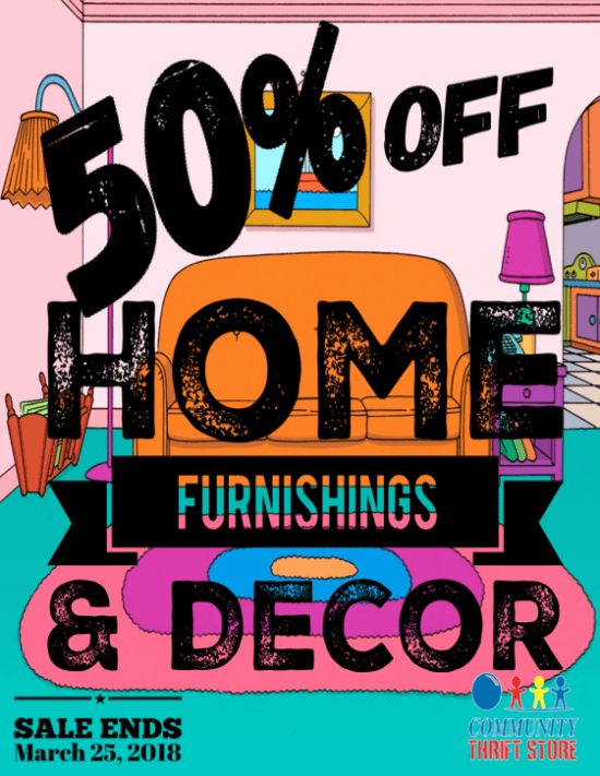 March 19, 2018March 19, 2018Community Thrift Store March 19, 2018 – March 25, 2018 50% OFF HOME FURNISHINGS AND DECOR! Continue Reading "March 19, 2018 – March 25, 2018"