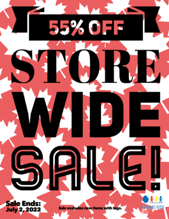 O! Canada! Our home and native land of AMAZING SALES!! Come celebrate your true patriot love this week with 55% OFF STOREWIDE! Sale excludes new items with tags and ends July 2nd, 2022. Please note, we are closed on July 1st, 2022 to celebrate our great nation!