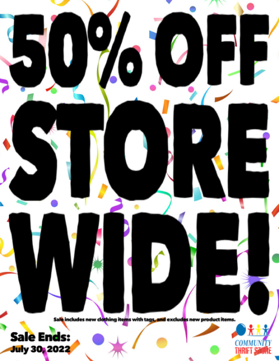 SAVE! SAVE! SAVE! So many ways to save at CTS! August 2nd – 6th, take 50% OFF Clothing & Toys. PLUS: SAVE THE TAX ON YOUR PURCHASE OF $25 OR MORE – keeping more of your hard-earned money in your pockets! Sale excludes new items with tags and new product items and ends August 6th, 2022.
