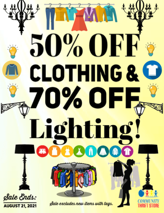 Our summer sales continue to sizzle!! Hurry in for 50% OFF Clothing and 70% OFF Lighting! Sale ends August 21, 2021 and excludes new items with tags.