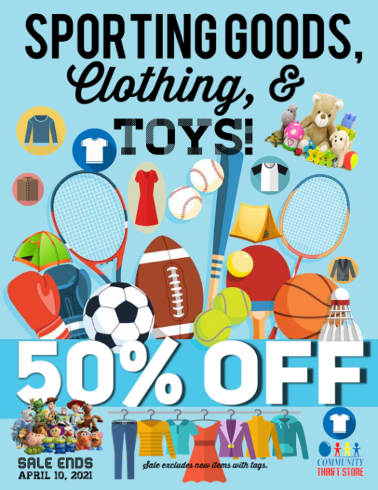 Need an excuse to beef up your spring wardrobe and replenish someone’s toy chest after all that spring cleaning? We can help with 50% off Sporting Goods, Clothing & Toys! Sale excludes new items with tags and ends on April 10, 2021.