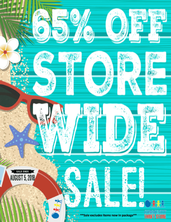 YOU GET 65% OFF!! YOU GET 65% OFF!! EVERYONE GETS 65% OFF STOREWIDE!! Hurry in for this Oprah-sized deal! Sale ends August 5, 2018. Sale excludes items new in package.