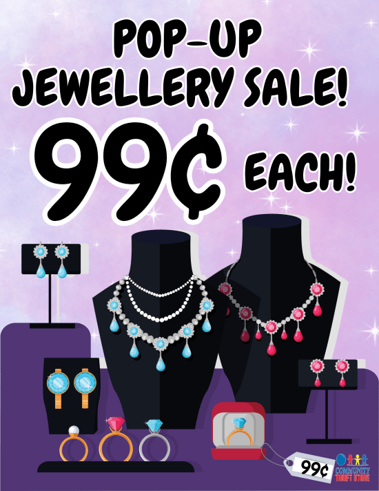 💍✨ POP-UP JEWELLRY SALE – 99¢ STEALS! ✨💍 Starting August 18th, it’s time to shine,Every piece is just point ninety-nine ($0.99!)!Rings, earrings, bangles, beads,All for less than your coffee needs! Hurry in — don’t hesitate,Once they’re gone, it’s far too late! 📅 When: August 18th — until sold out💲 Price: Only 99¢ EACH!